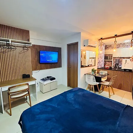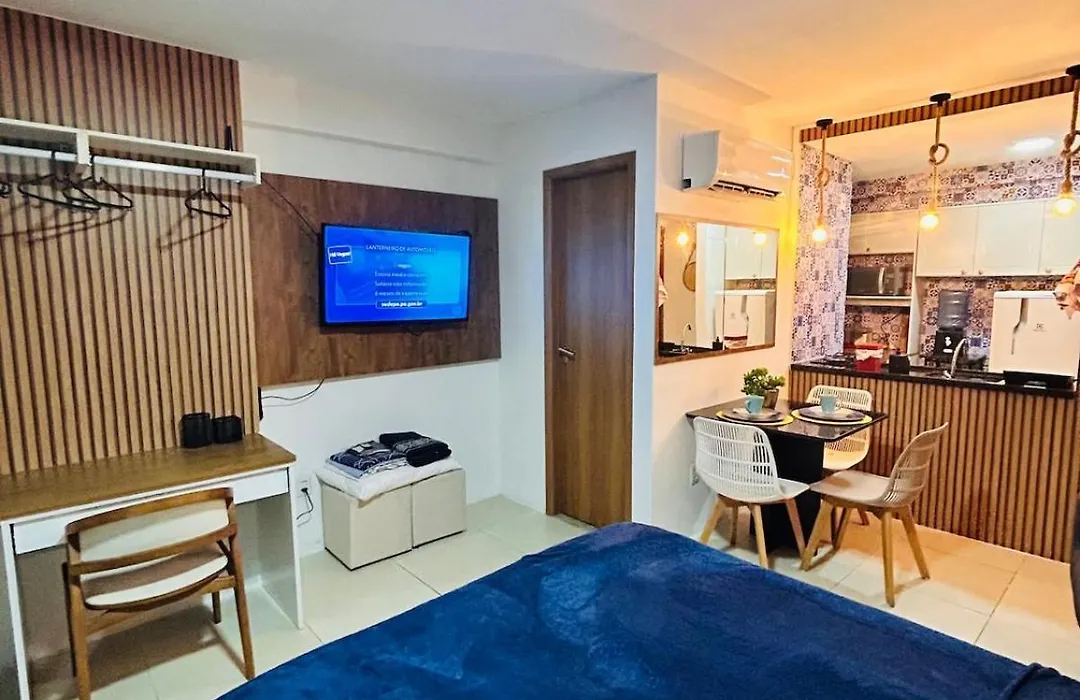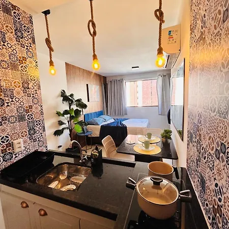 Flat In Ribeiro De Brito - Edf Golden Shopping tem cozinha totalmente equipada, e confortos como controle de temperatura.
